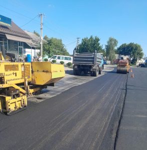 Наразі бригади працюють у селищі Стеблів, де виконують улаштування нового асфальтобетонного покриття на вулиці Тараса Шевченка.