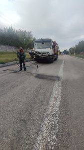 ✅ Ліквідують ямковість гарячими асфальтобетонними сумішами, фрезерують зруйноване покриття та застосовують струменевий метод ремонту з обладнанням STRASSMAYR;