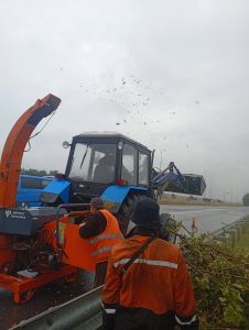 ✅ для утримання придорожньої інфраструктури – скошували траву на узбіччях і розділових смугах, проводили вирубку порослі, прибирали з доріг повалені вітром дерева та гілля з використанням спеціального обладнання;