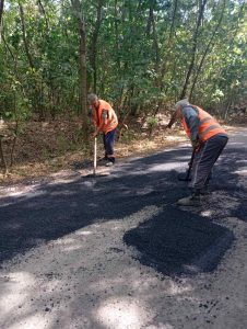 На автомобільній дорозі С-02-12-09 Грушка – Садки виконуються роботи з влаштування вирівнюючого шару із щебенево-піщаної суміші.