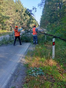розкрижування й прибирання повалених вітром дерев;